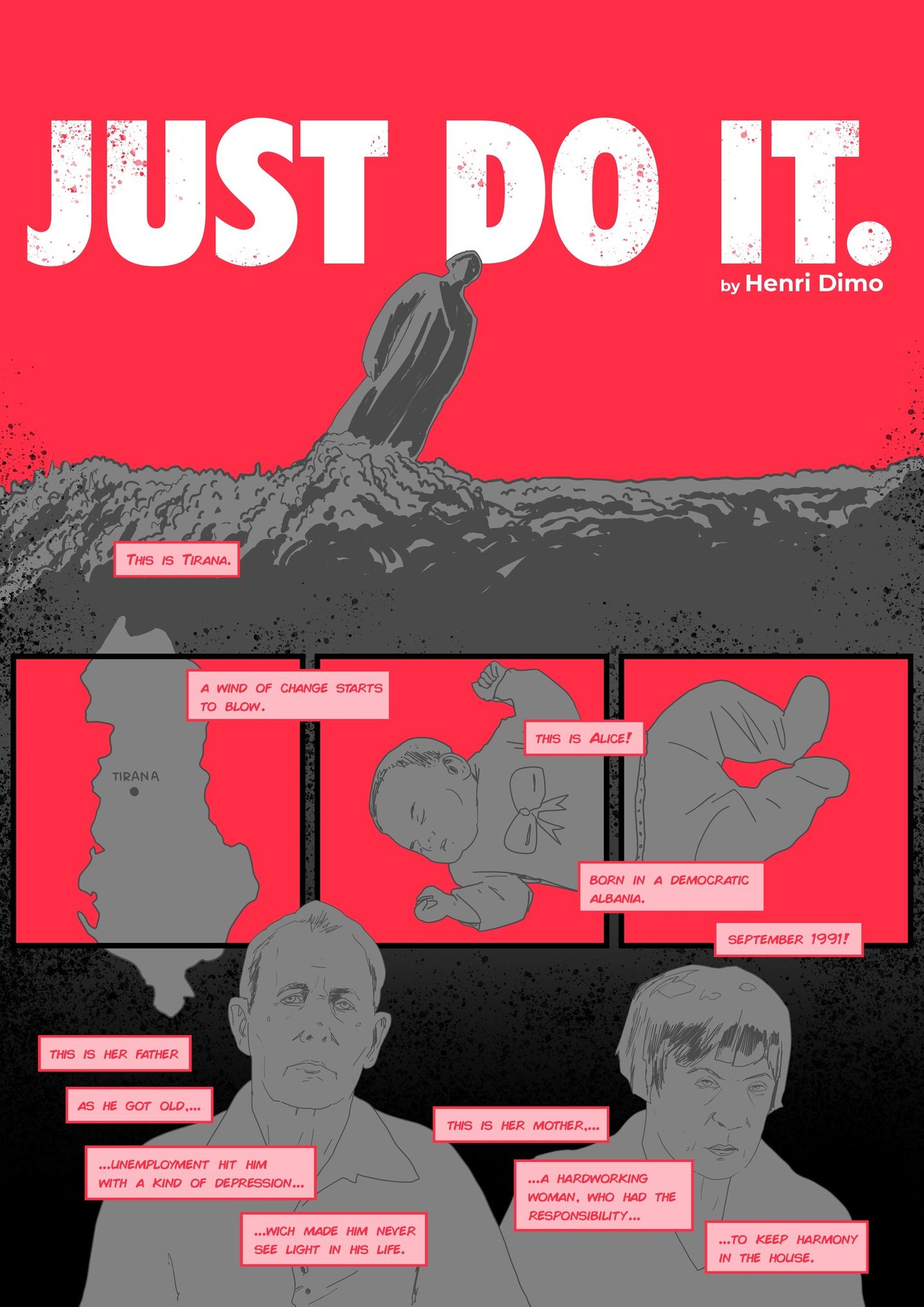 Just Do It” is a concise visual meditation on the power of choice. In only a few panels, Henri Dimo presents a moment of hesitation, a spark of decision, and the leap into action. The artwork strips away excess: expressive line, minimal background, structured pacing. This allows the emotional core—the moment you decide—to stand in full clarity. It is not a grand epic, but a universal moment: you, at the edge, ready to move. The philosophy is simple yet bold: act. Step. Engage. Just do it.